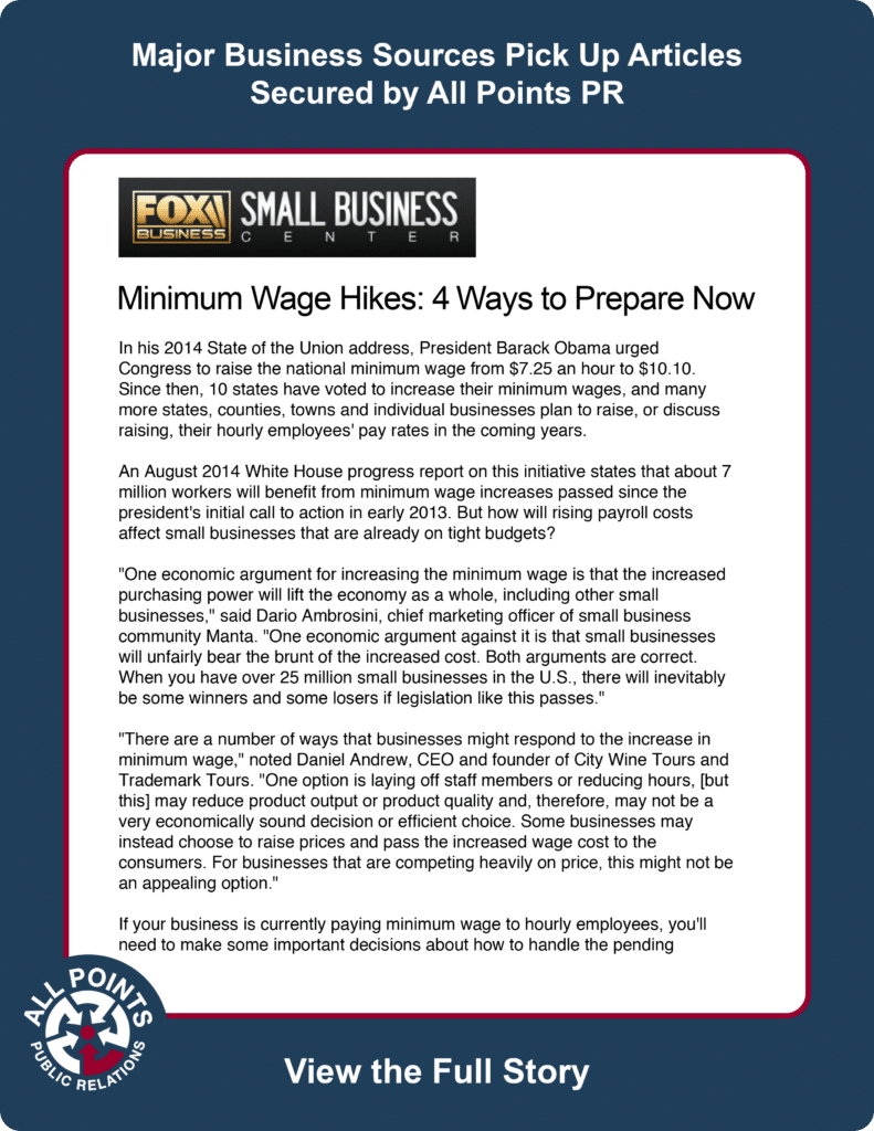 Major Business Sources Pick Up Articles Secured by All Points PR