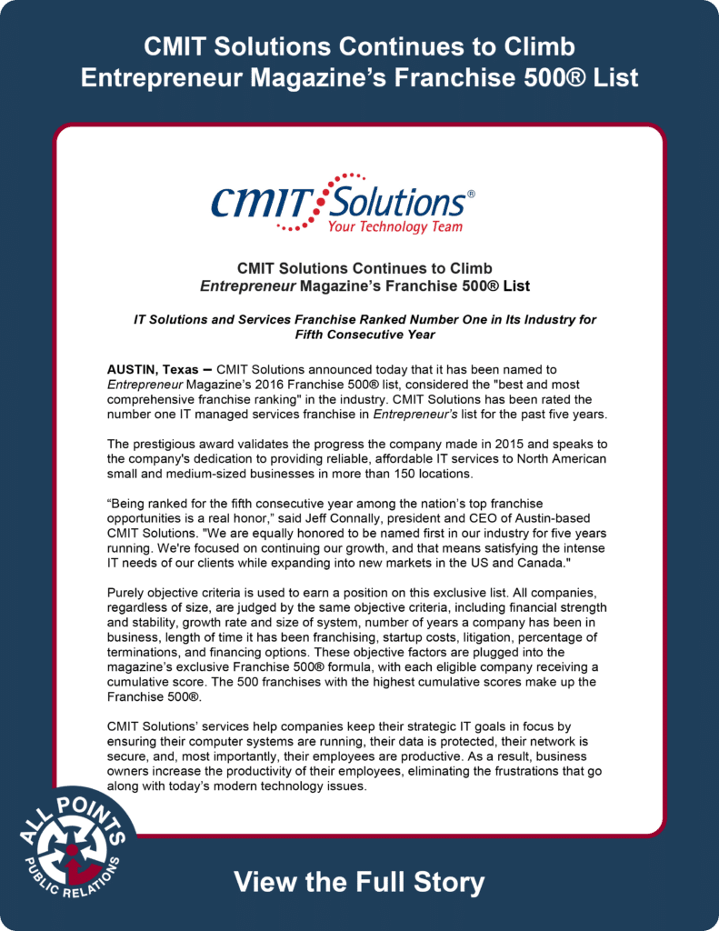 Our blog is where we share insights from the front lines of franchising, public relations, and marketing. From industry trends and strategic guidance to lessons learned through client work, we offer perspectives designed to help brands stay informed, competitive, and positioned for growth.