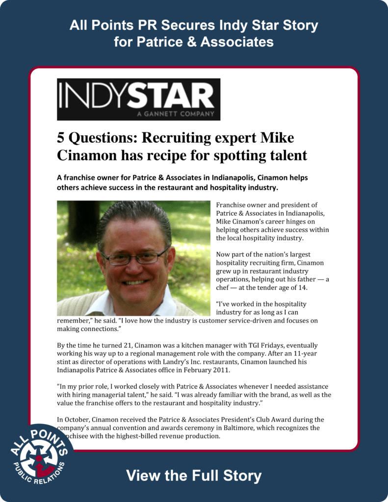 All Points PR Secures Indy Star Story for Patrice & Associates