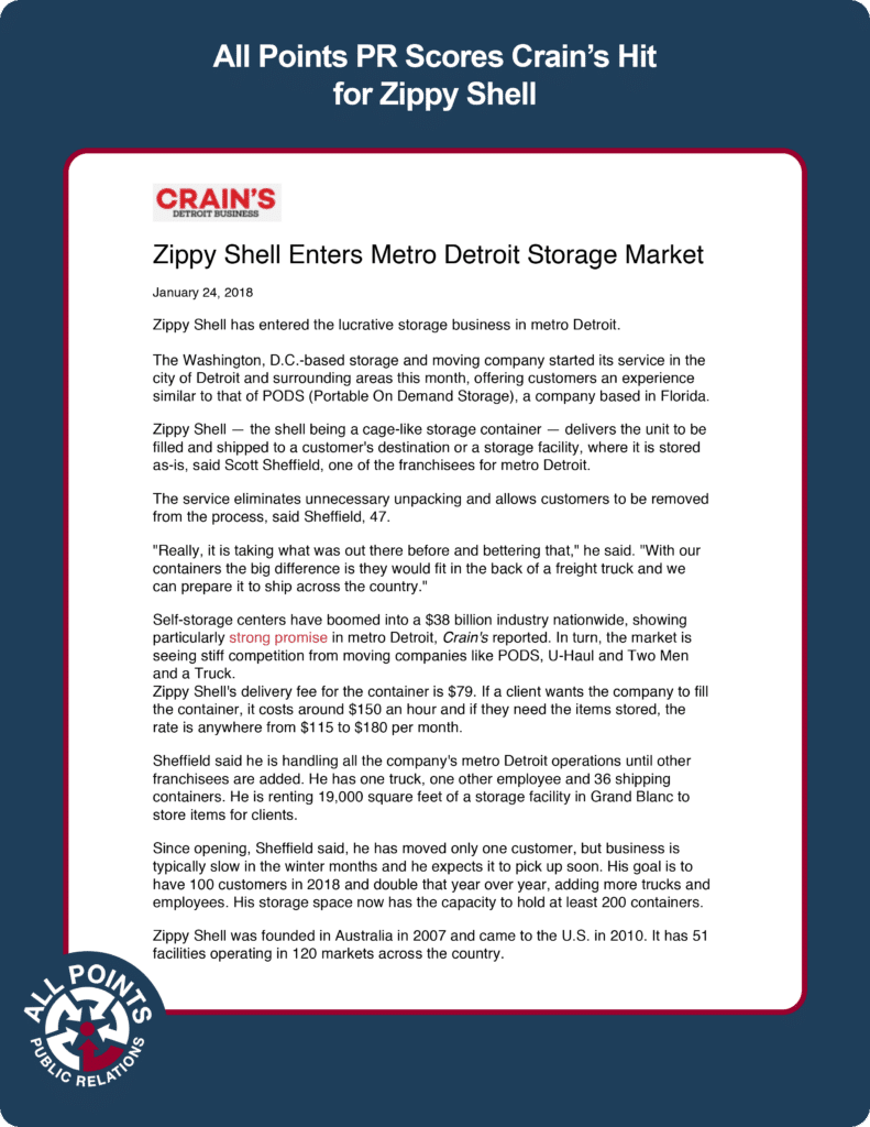All Points PR Scores Crain’s Hit for Zippy Shell