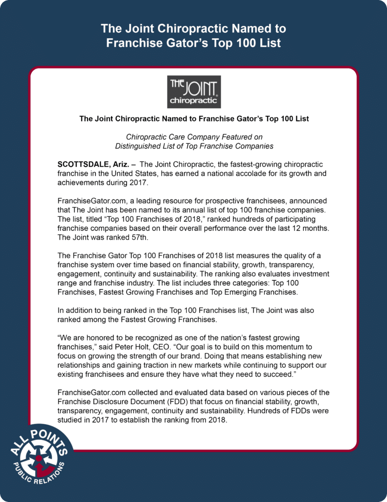 The Joint Chiropractic Named to Franchise Gator’s Top 100 List