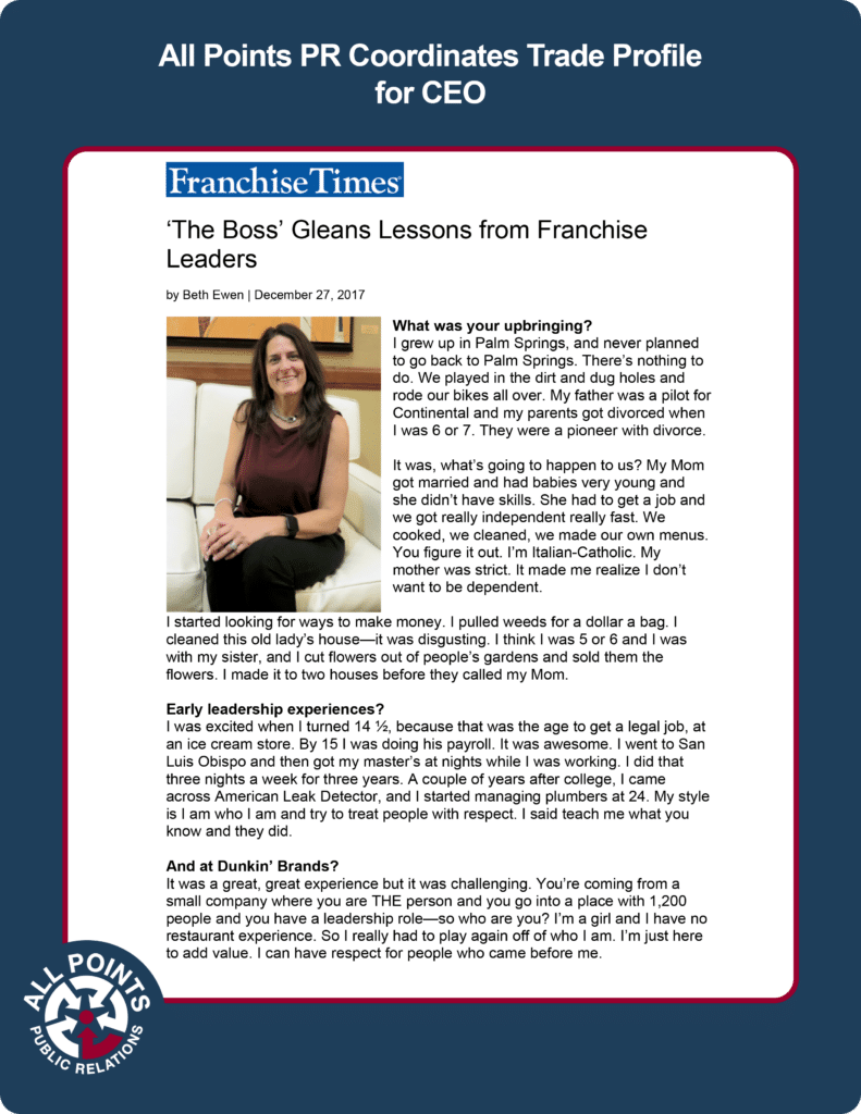 All Points PR Coordinates Trade Profile for CEO