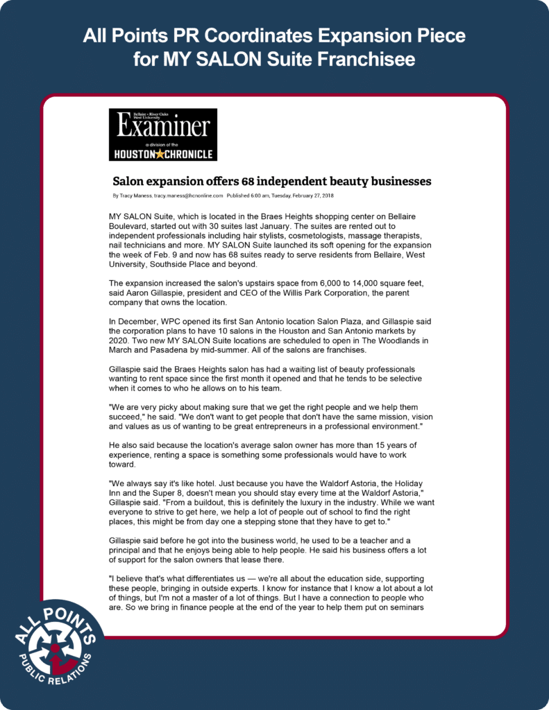 All Points PR scored a growth piece for client Maaco in the Birmingham News to announce the brand’s growth initiatives in that market. Coverage included the background of the brand as well as some clear franchising directives.