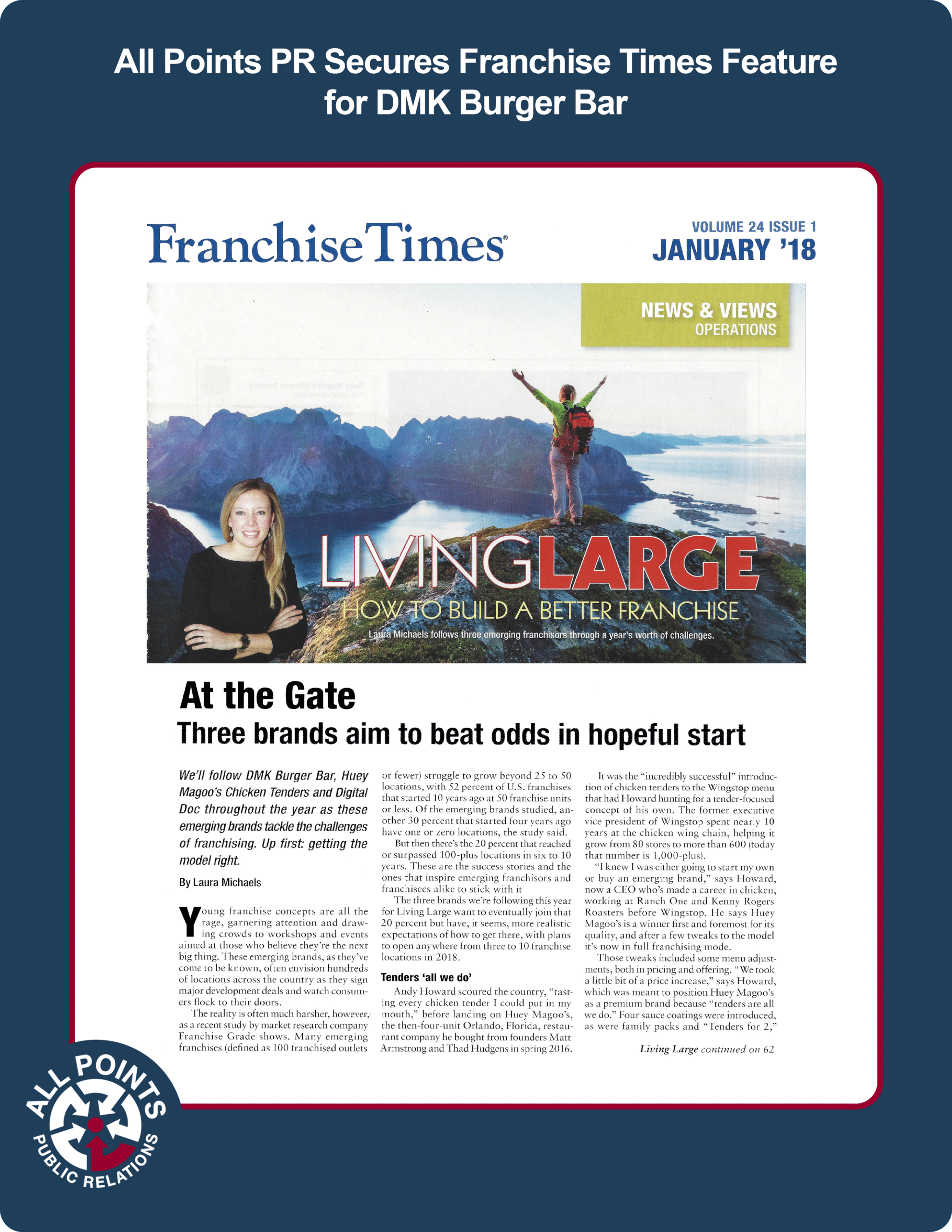 All Points PR secured a placement in Franchise Times for client DMK Burger Bar and its newly launched franchise growth model. Coverage ran online and in print.
