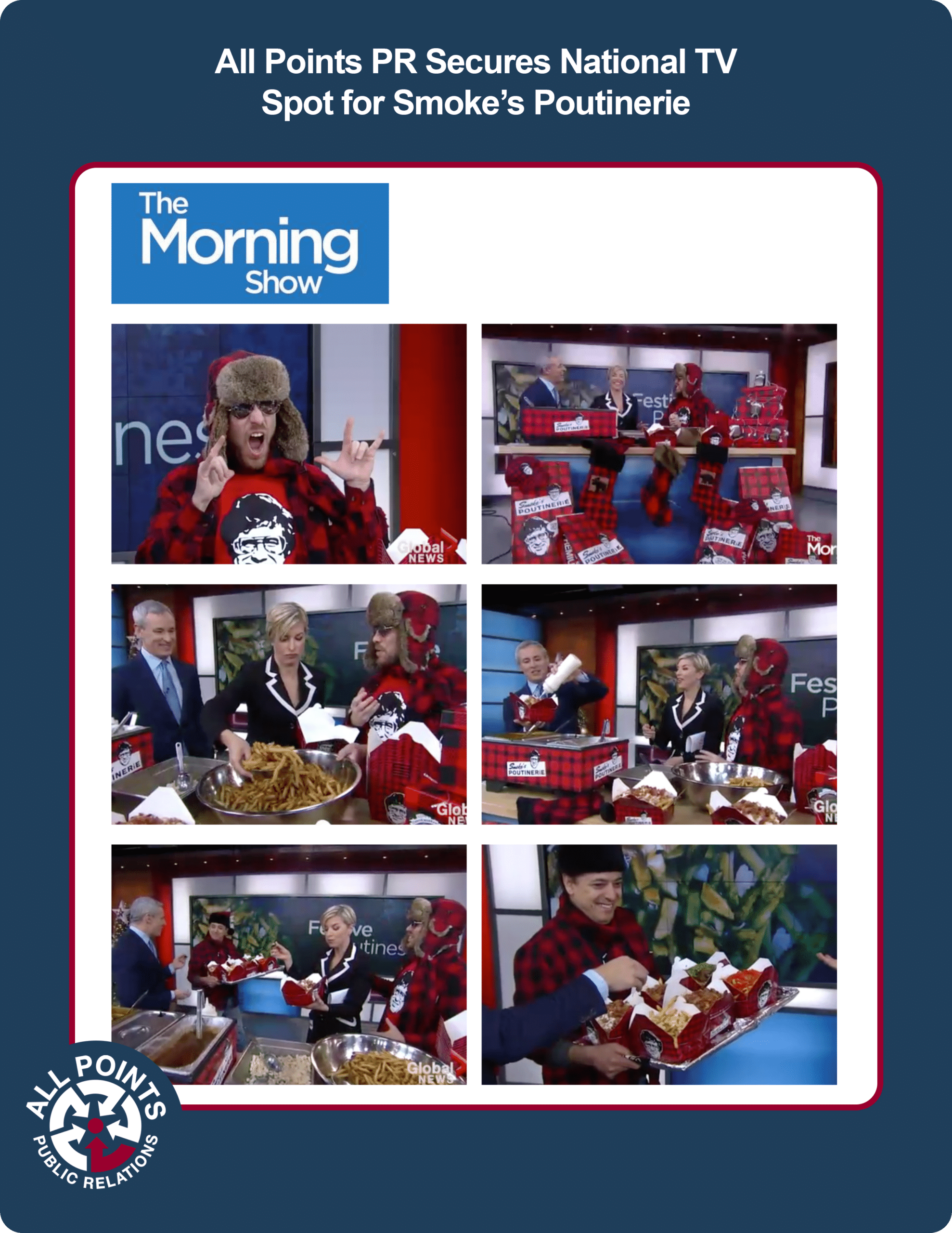 All Points PR secured a national TV segment for Canadian client Smoke’s Poutinerie on The Morning Show. CEO Ryan Smolkin went on air to discuss seasonal specials and the brand’s commitment to philanthropy.